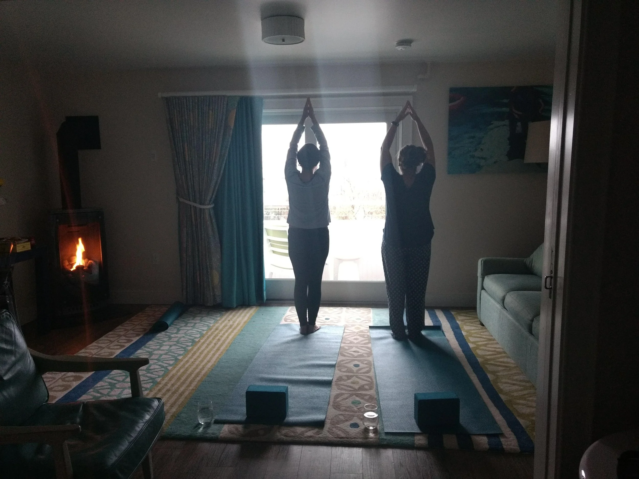 Morning-of-Wedding Yoga for the Bride and her Bridesmaids. These gals enjoyed a customized playlist and sparkling wine toast!